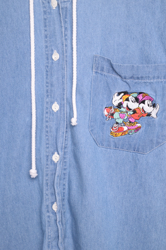 1990s Mickey & Minnie Hooded Denim Shirt