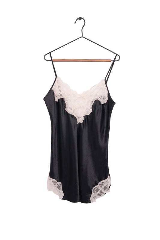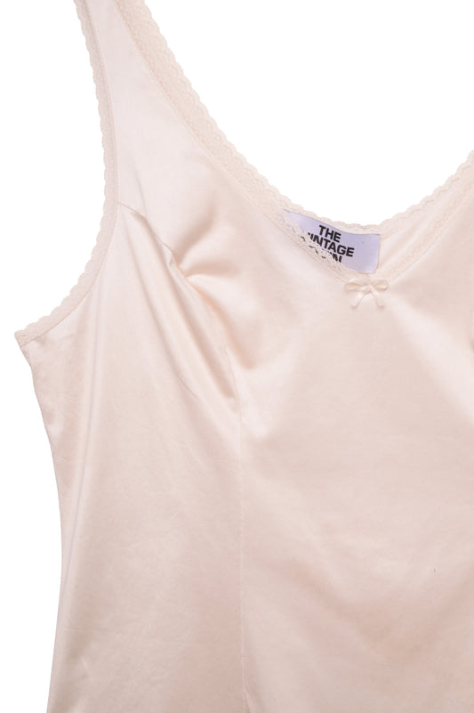 Sold outBeige Lace Trim Silk Slip Top