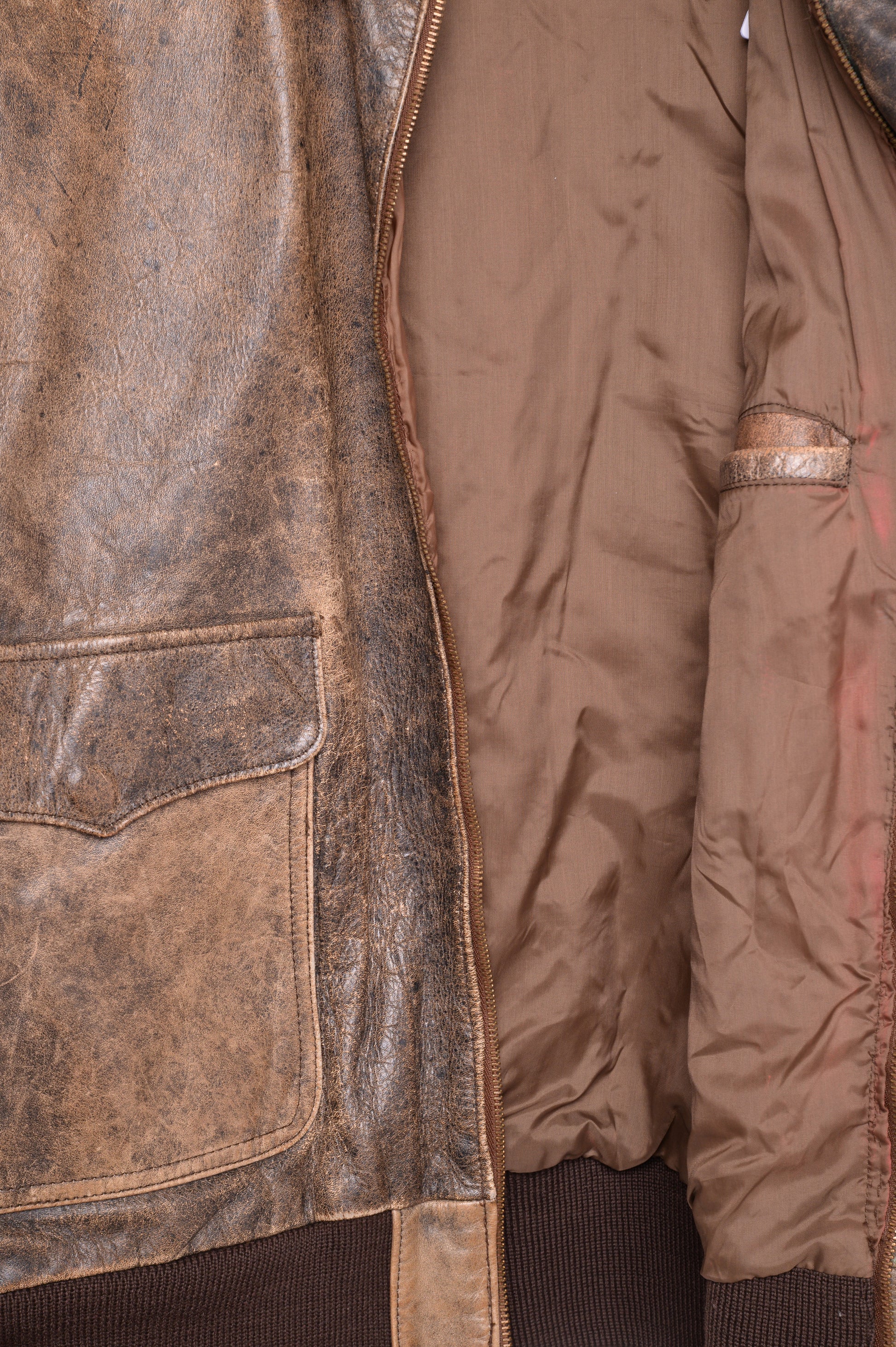 - Dark fading throughout. Slight discoloration on jacket zip and on lining.