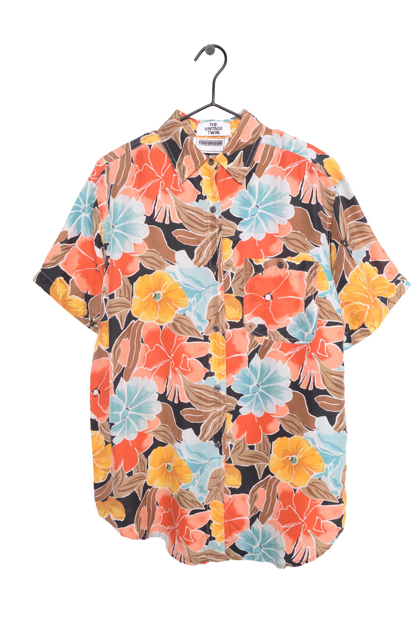 1980s Floral Silk Button Top