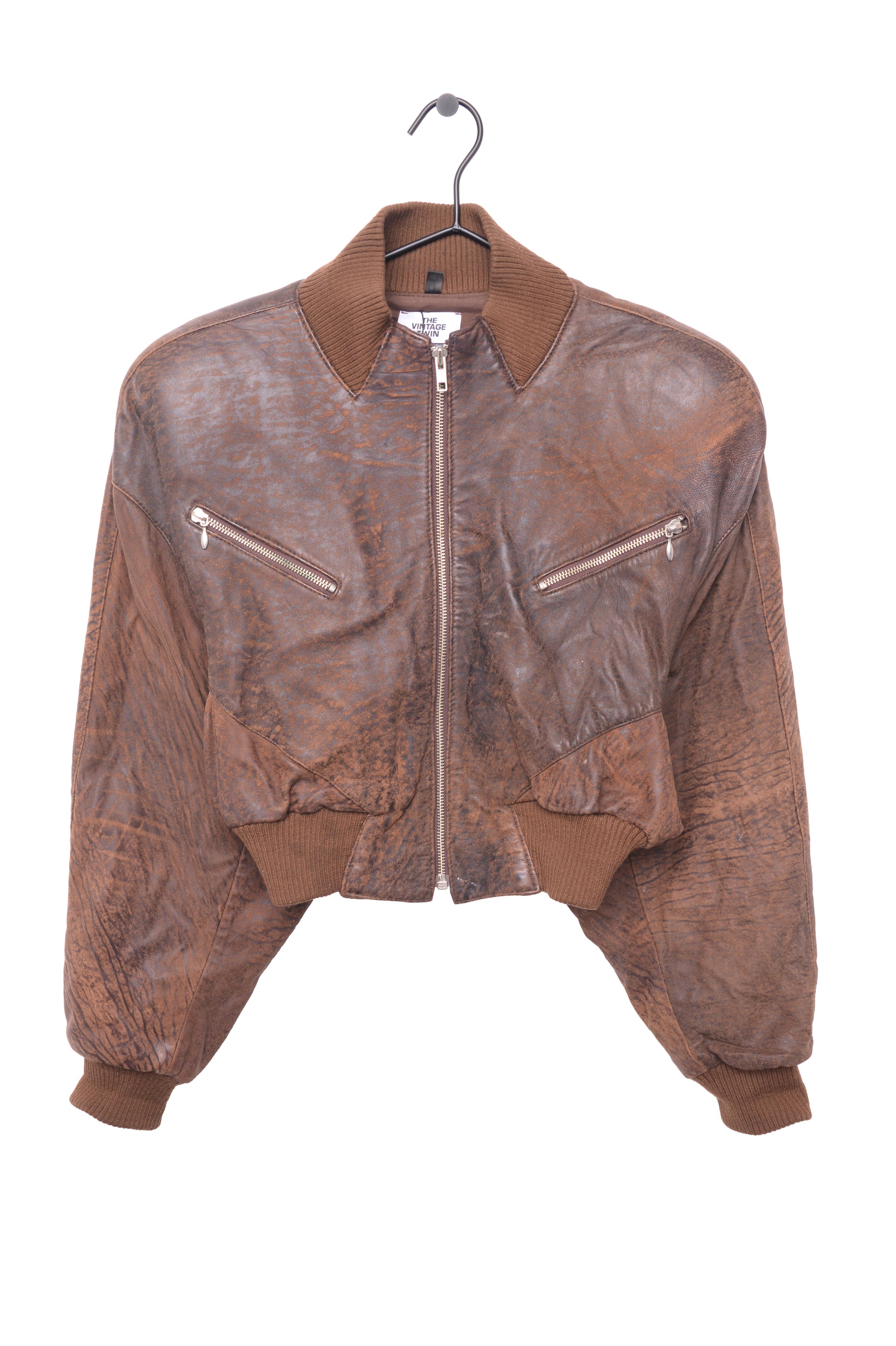 Cropped Leather Bomber Jacket
