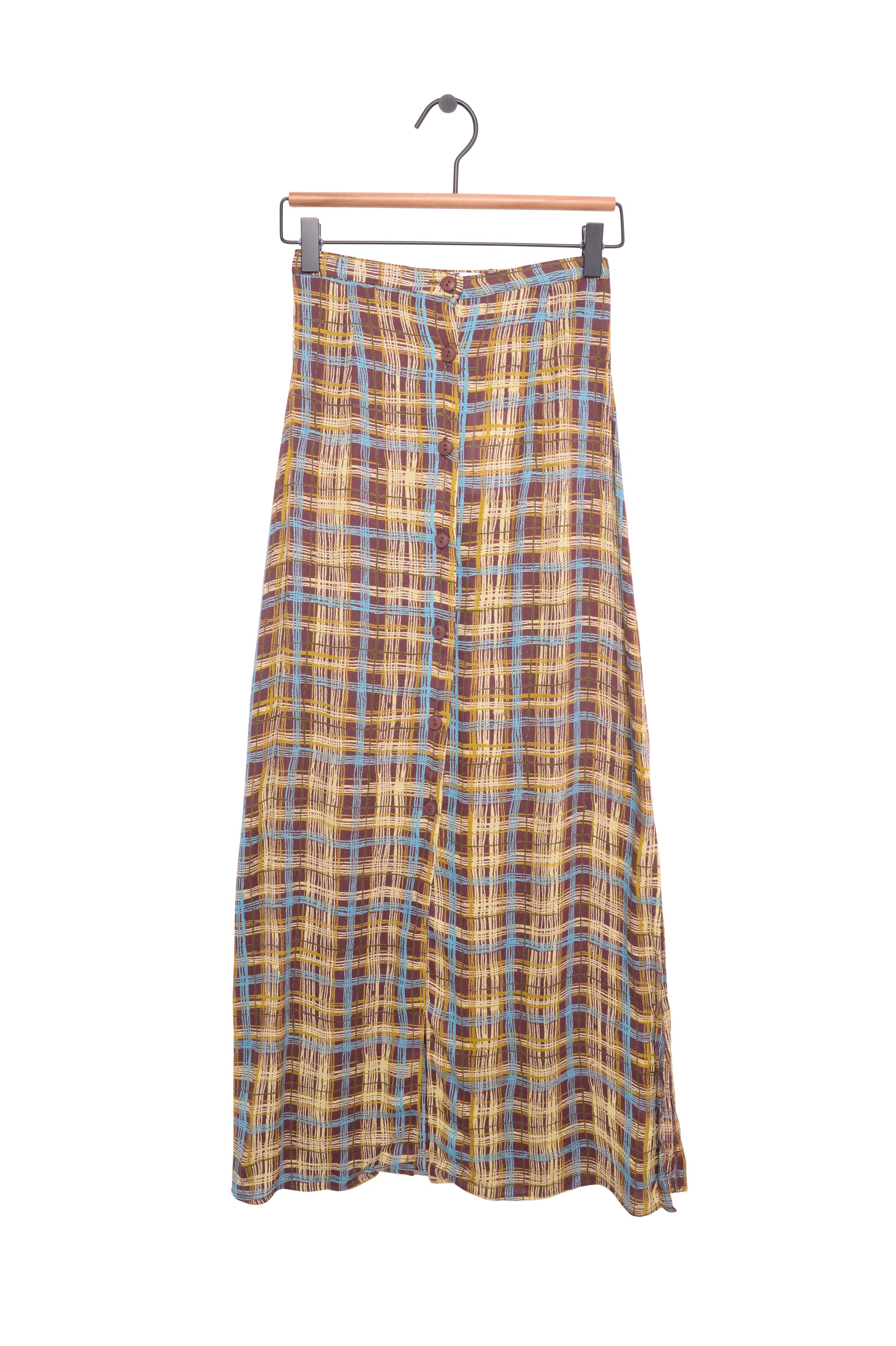 Plaid Rayon Maxi Skirt USA